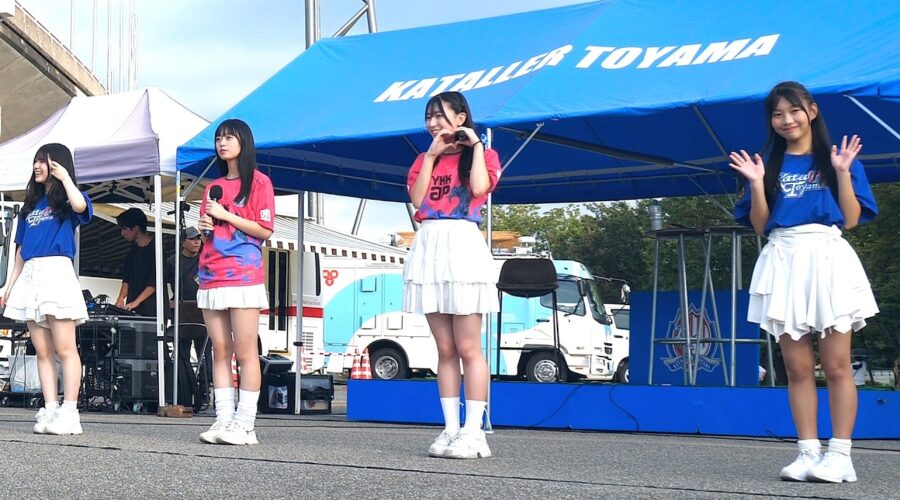 2025年8月30日(土曜) 午後4時頃。富山県富山市、富山県総合運動公園 陸上競技場 メイン入場ゲート前広場 特設ステージ。2025 明治安田J2リーグ 第28節 カターレ富山 vs. ロアッソ熊本、「GEORGIA …