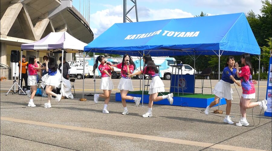 2025年8月16日(土曜) 午後3時頃。富山県富山市、富山県総合運動公園 陸上競技場 メイン入場ゲート前広場 特設ステージ。2025 明治安田J2リーグ 第26節 カターレ富山 vs. FC今治、「GEORGIA pr …