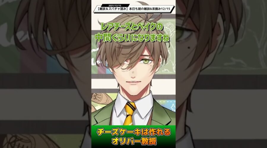 チーズケーキにご縁がある理由のひとつかも ■オリジナル動画■ぜひ高評価を■ 2021/12/15【雑談&スパチャ読み】本日も朝の雑談&茶摘み12/15【オリバー・エバンス/にじさんじ】 ◎オリバー・エバンス @ …
